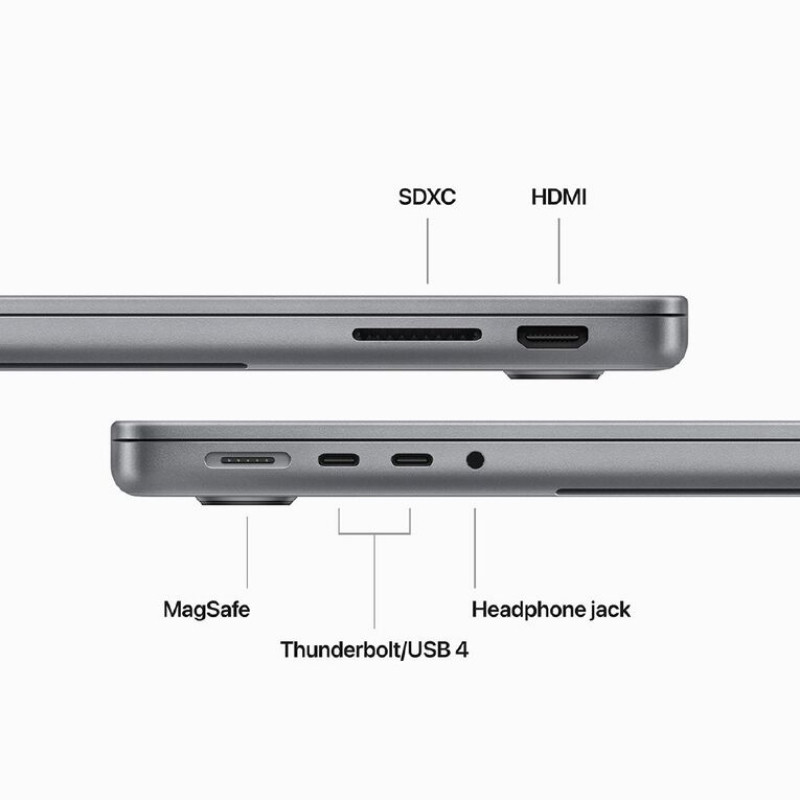 لپتاپ ۱۴.۲ اینچی اپل مدل MacBook Pro ، با طراحی مینیمال و بدنه آلومینیومی سبک و مستحکم، گزینهای ایدهآل برای کاربران حرفهای و علاقهمندان به محصولات اپل محسوب میشود. وزن ۱.۶۱ کیلوگرم و ضخامت ۱۵.۵ میلیمتری، این لپتاپ را به یک دستگاه قابل حمل تبدیل کرده و برای دانشجویان و افرادی که مدام در حال جابهجایی هستند، مناسب است. این لپتاپ به چیپ قدرتمند M3 Pro مجهز است که با پردازنده ۱۱ هستهای و گرافیک ۱۴ هستهای، عملکردی بینظیر در انجام پردازشهای سنگین، ویرایش ویدیو و طراحی گرافیک دارد. صفحهنمایش ۱۴.۲ اینچی Liquid Retina XDR با وضوح ۳۰۲۴ در ۱۹۶۴ پیکسل و نرخ بهروزرسانی ۱۲۰ هرتز، کیفیت تصویر بینظیری را ارائه میدهد و از فناوریهایی چون True Tone و ProMotion پشتیبانی میکند. حافظه رم LPDDR5 و حافظه SSD پرسرعت، سرعت و عملکردی پایدار را تضمین میکنند، هرچند امکان ارتقای حافظهها وجود ندارد. این دستگاه دارای درگاههای متنوع از جمله HDMI 2.1 ،USB-C و MagSafe 3 بوده و از Wi-Fi 6E و بلوتوث ۵.۳ نیز پشتیبانی میکند. باتری لیتیومپلیمری آن تا ۱۸ ساعت شارژدهی داشته و با آداپتور ۹۶ واتی بهسرعت شارژ میشود. کیبورد مجیک با نور پسزمینه، Touch ID و سیستم صوتی شش اسپیکری با Spatial Audio، تجربه کاربری خوبی را برایتان فراهم میکنند. این لپتاپ، گزینهای ایدهآل برای برنامهنویسی، طراحی، ویرایش است.