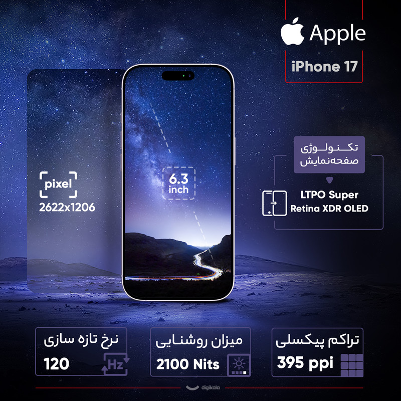 گوشی موبایل اپل مدل iPhone 17 ZAA تک سیم کارت + eSim ظرفیت 256 گیگابایت و رم 8 گیگابایت - نات اکتیو