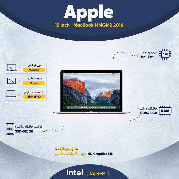 لپ تاپ 12 اینچی اپل مدل MacBook MMGM2 2016 با صفحه نمایش رتینا