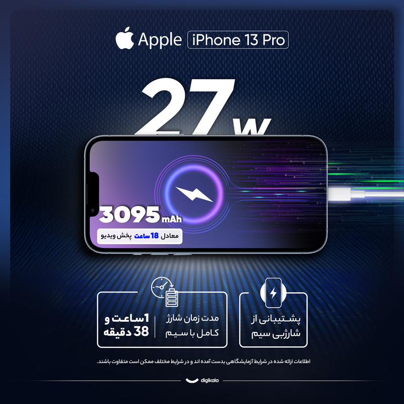 اپل همواره توانسته است گوشیهای هوشمند قدرتمند و بسیار باکیفیتی را روانه بازار کند و پرچمداران سری 13 هم توانستند با بهره بردن از مشخصات فنی قدرتمند، نهتنها به نسبت نسل قبلی یعنی خانواده iPhone12، بلکه به نسبت پرچمداران مدعی دیگر هم عملکرد بسیار درخشانی داشته باشند. iPhone 13 Pro از لحاظ مشخصات فنی در نظر گرفته شده چیزی کم از گل سرسبد این سری یعنی iPhone 13 Pro Max ندارد. در نمای روبهرویی این گوشی به صفحهنمایش با ابعاد 6.1 اینچ و رزولوشن 2532x1170 از نوع Super Retina XDR OLED مجهز شده است. صفحهنمایش بسیار باکیفیت که از جمله قابلیتهای قدرتمند آن، میتوانیم به نرخ بروزرسانی 120 هرتز و البته حداکثر روشنایی 1200 نیت (nits) اشاره کنیم. در بخش سنسورهای دوربین هم قرارگیری سه سنسور با رزولوشن 12 مگاپیکسل به ترتیب از نوع عریض، تلهفوتو و فوق عریض یا همان ultrawide هستیم که البته سنسور TOF 3D LiDAR هم با عملکردی مشابه با سنسورهای سنجش عمق و البته بهتر، این گوشی را همراه میکنند. برای دوربین سلفی هم سنسور با رزولوشن 12 مگاپیکسل در نظر گرفته شده است. در بخش فیلمبرداری هم مثل همیشه این بار اما به لطف توانایی ضبط ویدیو با نهایت کیفیت 4K و سرعت 60 فریم در ثانیه برای سنسور عریض و سلفی، این گوشی عملکرد بینظیری را به شما ارائه میکند که کمتر پرچمداری توانایی رقابت با آن را دارد. حضور پردازنده قدرتمند Apple A15 هم سبب شده تا این گوشی بهراحتی از پس اجرای سنگینترین بازیهای روز دنیا بربیاید. باتری با میزان ظرفیت 3095 میلیآمپرساعت از دیگر مشخصات در نظر گرفته شده است. البته باید بدانید که خبری از آداپتور شارژر نیست. گوشیهای نات اکتیو با قرار گرفتن سیمکارتهای داخلی اکتیو میشوند و برخلاف مدل اکتیو پلمپ کالا باز نشده است. گوشیهای اکتیو برند اپل هم به این شکل هستند که به دلیل محدودیتهای برخی از محصولات اپل برای کشور ایران، در کشورهای همسایه بهصورت رسمی با یک بار قرار گرفتن سیمکارت، اکتیو شده و پلمپ میشوند و باید بدانید که این پروسه هیچ مشکلی در راستای گارانتی کالا بههمراه ندارد. پارتنامبر CH یا همان چین هم تنها از فیستایم صوتی پشتیبانی نمیکند. پارتنامبرهای اروپا و ژاپن و امارات تک سیمکارت هستند و پارتنامبرهای مربوط به امارات هم از فیس تایم پشتیبانی نمیکنند.