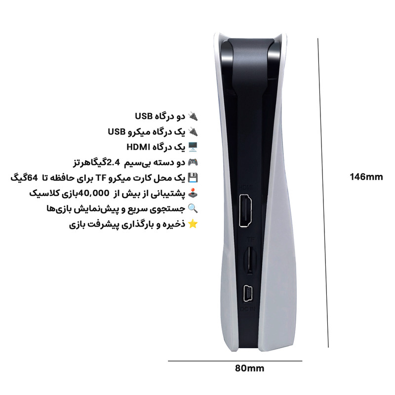 نوع درایو کنسول : ندارد (ذخیره و اجرای بازی‌ها از طریق حافظه داخلی و کارت TF)