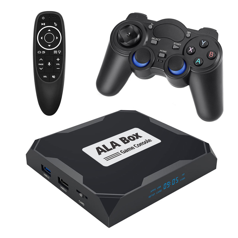 کنسول بازی آلاباکس شامل یک کنسول اندرویدی، یک دسته بازی بی سیم و یک ایرماوس است. این کنسول با داشتن سیستم عامل اندروید میتواند هزاران بازی اندرویدی را با کیفیت فوق العاده 8K بر روی مانیتور و یا تلویزیون شما اجرا نماید. کنسول بازی آلاباکس از قویترین پردازنده (Amlogic S905x) موجود در بازار استفاده مینماید و از حافظه رم 4 گیگابایت و حافظه داخلی 64 گیگابایت بهره می برد. این کنسول دارای دو درگاه USB2.0 و USB3.0 است و از کارت حافظه microSD تا ظرفیت 128 گیگابایت پشتیبانی مینماید. همچنین برای پخش با کیفیت صدای خروجی دستگاه یک پورت AV و یک پورت اپتیکال بر روی بدنه آلاباکس جانمایی شده است. برای راحتی کار یک Airmouse فوق العاده با نور پس زمینه همراه کنسول وجود دارد که با تکان دادن مچ دست نشانگر موس روی صفحه تلویزیون حرکت میکند. همگام سازی دسته و کنسول با استفاده از دانگل USB میباشد.