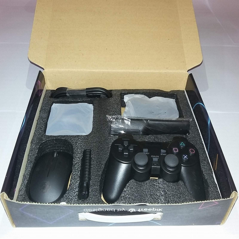 گیم باکس agbox-eco-02 مشتمل بر یک اندروید باکس، یک دسته بازی بی سیم، یک ماوس بیسیم و یک مموری 32 گیگ جهت ارتقا حافظه است. دو مجموعه بازی کامل و متنوع که مجموعا بیش از چهل بازی از پرطرفدارترین بازی های گوگل پلی مشتمل بر بازی های ورزشی مانند فوتبال در انواع سبک، بسکتبال، بدمینتون وتنیس، مسابقات ماشین سواری در انواع سبک ها، بازی های تیراندازی (FPS) در انواع سبک، مبارزات شخصی، ارکید و فکری و ... می باشد بر روی سیستم نصب است. تمامی بازی ها، با گرافیک بسیار خوب و اکثرا سه بعدی و از بازیهای مشترک اندروید، ایکس باکس، پلی استیشن سه و چهار و کامپیوتر هستند. اکثر بازی ها از بازی های دیتا دار اندروید انتخاب شده است. همچنین مجموعه بازی های دیگر نیز برای سیستم در نظر گرفته شده که شما میتوانید به صورت جداگانه سفارش دهید. علاوه بر این شبیه ساز کنسول نوستالژیک سوپر نینتندو و مجموعه ای از بهترین بازی های آن مانند سوپر ماریو، سونیک، مورتال کامبت و ... بر روی سیستم نصب است. مزیت پلتفرم اندروید نسبت به بقیه پلتفرم ها، تنوع بسیار بالای بازی ها است. به عنوان مثال در پلتفرم اندروید علاوه بر بازیهای فوتبال معروف FIFA و PES، بازیهای فوتبال متنوع دیگری مانند DLS و world league scoccer هستند که از سوی کاربران امتیازی در همان حد و یا بیشتر به خود اختصاص داده اند و با گیم باکس اندروید قابل بازی هستند. اندروید باکس سیستم از شرکت معروف انی باکس می باشد. کیفیت و محبوبیت این اندروید باکس را از آنجا می توان فهمید که در سایت های بین المللی امتیاز ۴.۷۸ از ۵ را کسب کرده است. به غیر از بازی پرندگان خشمگین، تمامی بازیها با دسته قابل بازی هستند. راهنمای جامع سیستم و نحوه اجرای بازیها از طریق میانبر مربوطه جهت ارتباط صحیح با دسته را در کاتالوگ سیستم می توان یافت. در بازیها، منوهای انتخاب مراحل و تنظیمات اولیه با ماوس انجام شده و دسته داخل محیط بازی فعال می گردد. همچنین حدود 20 گیگابایت فضای سیستم ازاد گذاشته شده تا بتوان از قابلیت های معمول اندروید باکسها استفاده نمود. در این سیستم از دسته بازی بیسیم استفاده شده است و رنگ دسته آبی، قرمز، سفید یا مشکی است. در صورت تمایل به استفاده از مجموعه های فیلم انلاین، مانند هر اندروید باکس دیگر، سیستم باید در دید مستقیم مودم باشد و بهتر است با کابل به مودم متصل شود.