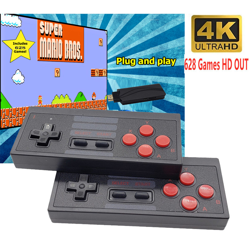مینی کنسول مدل Extreme mini game box شامل 628 بازی کلاسیک از کنسولهای میکرو، نینتندو، سگا و... است که با کیفیت 4K در صفحه نمایش تلویزیون اجرا می شود. این دستگاه شامل دو دسته بازی بیسیم است و توسط یک رابط HDMI به تلویزیون های خانگی متصل میشود. دسته های بازی با دو باتری نیم قلمی کار می کنند.