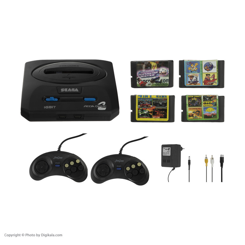 امروزه با وجود طراحی، تولید و عرضهی کنسولهای خانگی مدرن نظیر PS5، PS4 و یا X-BOX و دیگر کنسولها، هنوز هم که هنوز است کنسول قدیمی نظیر سگا و میکرو لطف دیگری دارند و کار کردن و بازی با آنها لذتبخشتر است. کنسول بازی مدل MD-2013 به همراه یک آداپتور برق و پنج نوار بازی و دو دسته عرضه میشود و حس نوستالژی را برای شما به ارمغان میآورد. این محصول دارای 1GBIT حافظه است و در حافظه داخلی آن هم بازیهایی وجود دارد. هر کدام از نوارهای بازی این کنسول دارای چند بازی هستند که برای سرگرمی و گذراندن اوقات فراغت وسیلهی مناسب و مفرحکنندهای است. این محصول به همراه کابل عرضه میشود که به راحتی بتوانید آن را به نمایشگر خود یعنی تلویزیونهای خانگی متصل کرده و از آن استفاده کنید. کنسول بازی مدل MD-2013 دارای دو درگاه در قسمت جلویی است که توسط آنها میتوانید دو دستهی کنسول را به آن متصل کنید.