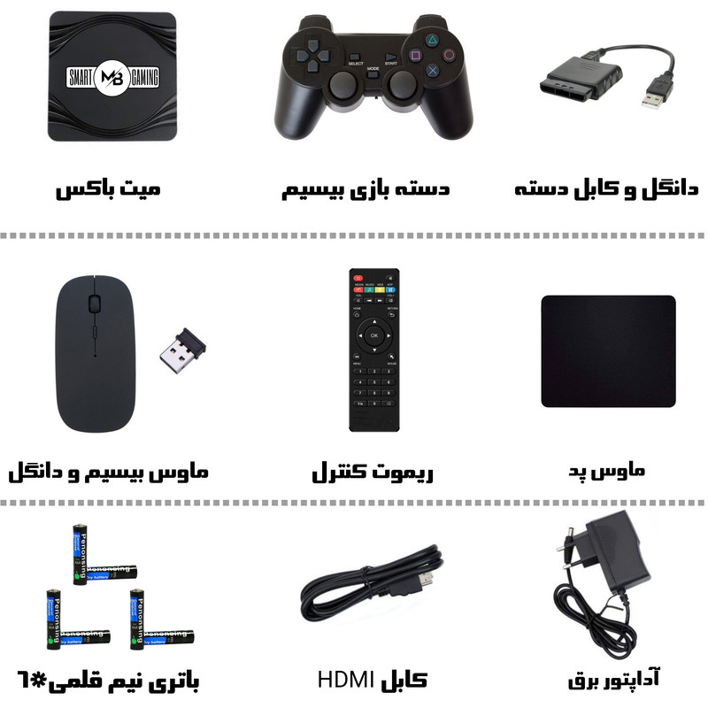 کنسول بازی MATEBOX مدل A_100 حاصل خلاقیت دستجمعی یک تیم در حوزه کنسول بازی و گیم میباشد. این محصول بهعلاوه دستگاه، شامل یک عدد دسته بیسیم، یک عدد موس بیسیم و یک عدد ریموت کنترل دستگاه میباشد. در کنار این محصول علاوه بر موارد ذکر شده، یک عدد ماوسپد، 6 عدد باتری، کابل HDMI و همینطور یک عدد آدابتور برق قرار میگیرد. بر روی این محصول، مجموعهای بینهایت از بازی های بروز و پرطرفدار جهان و همچنین کاربردیترین اپلیکیشنها از جمله شبکههای اجتماعی مختلف و سینمای خانگی قرارداده شده که هر کسی را مجذوب خود میکند. بازیهای متعددی از قبیل بازی فوتبال، بازیهای ورزشی، استراتژیک، مسابقهای، فکری، مبارزهای، پلتفرمر و ده ها بازی دیگر از پیش روی دستگاه نصب و آمادهی شروع بازی هستند. علاوه بر بازی های موجود در دستگاه، کاربران این محصول میتوانند تمام بازی ها و اپلیکیشنهای مورد علاقهی خود را بصورت رایگان بر روی دستگاه نصب کنند. همچنین تمام بازی هایی که از سوی کاربر بر روی دستگاه نصب میشوند با دسته بازی بیسیم موجود در بستهبندی سازگار خواهند بود.